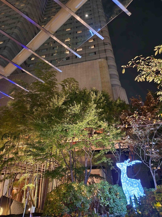 ホテル正面玄関と駅前玄関では、ホリデーシーズンにふさわしく華やかなイルミネーションでお客さまをお迎えします。特に駅前玄関は昨年よりもパワーアップし、より煌めくイルミネーションをご覧いただけます。ホテルらしく華やかながらも落ち着いた彩りの中に、サンタクロースの飾りやトナカイモチーフのイルミネーションを配置し、クリスマスらしさを演出しています。