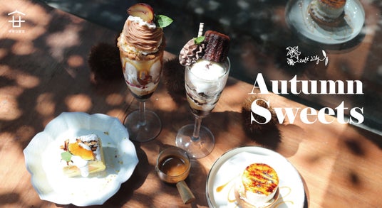 秋の限定スイーツは「アップルシブースト」以外にも、右から「カヌレパフェ」「モンブランパフェ」「かぼちゃのキーロ」があります。