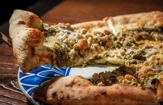 ピッツアに欠かせないチーズはイタリアから空輸された水牛のモッツァレラチーズを使用し、シンプル(Rustic)な食材が生み出す三位一体の贅沢(Indulgence)な味わいをどうぞ。フリアレッリは主に南イタリアを中心に栽培される菜の花の一種で、甘くほろ苦い味わいが特徴です。コースの始まりに相応しい、軽い食べ心地のピッツァです。