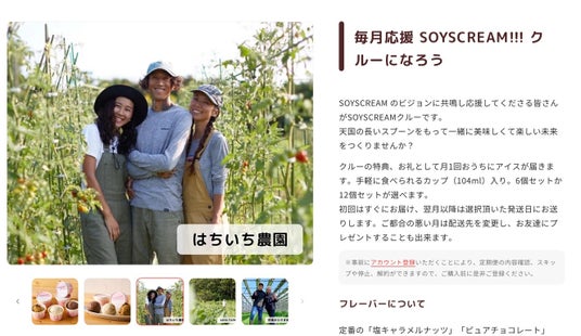 農家と継続的につながり、応援していることを実感しながら畑生まれのアイスクリームを味わえる、まったく新しい“応援型”ECサイトとなっています。