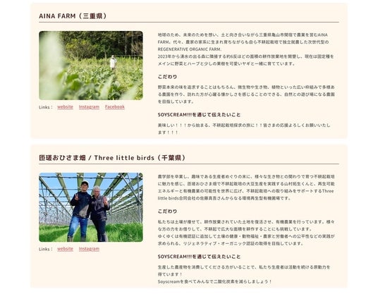 ECサイト「SOYSCREAM!!!」 提携農家紹介ページイメージ