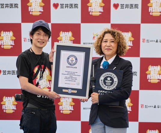2024年9月21日(土)、肉のまち加古川推進協議会は、「世界最大の生肉ケーキ(Largest raw meat cake)」がギネス世界記録(TM)を達成しました。肉ケーキは9月20日に、地域の精肉店など食肉関係事業者をはじめとする約30社・50人以上の協力により約4時間かけて製造され、翌日21日に兵庫県加古川市で開催された「JAPAN BEEF FESTIVAL」の会場内でその場に立ち会ったギネス世界記録認定員により認定されました。