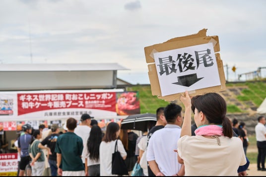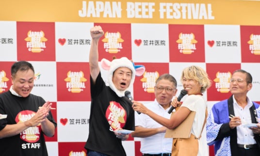 「JAPAN BEEF FESTIVAL」の会場内でその場に立ち会ったギネス世界記録認定員による認定の瞬間。
