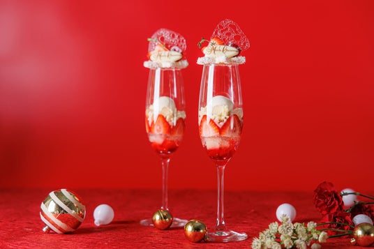 クリスマスをテーマにした「苺と洋梨のクリスマスパフェ」は、いちごと洋梨を贅沢に使用し、アクセントにカルダモンとレモンのジュレと、チョコレートコーティングしたライスパフで食感をプラスし、ホリデーシーズンならではの華やかな仕様に。
