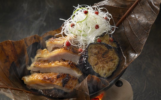 オリーブ地鶏の朴葉味噌焼き
