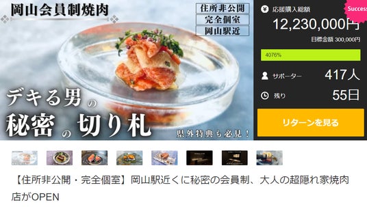 本プロジェクトは、応援購入サービス「Makuake」でプロジェクト開始からわずか31日間で、会員数417名、応援金額1223万円を達成。Makuakeの飲食関連プロジェクトで中四国エリアで歴代1位(2024年10月7日時点・自社調べ)の記録を樹立しました。