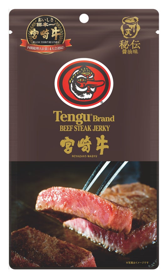 日本のビーフジャーキー市場のパイオニアである鈴商のTengu(テング)ブランドが、史上初・4大会連続で全国和牛能力共進会(別名:和牛のオリンピック)にて内閣総理大臣賞を受賞している“おいしさ日本一”の宮崎牛を使ったしたスペシャルなビーフジャーキーを作りました。