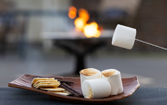 焚き火グルメの定番のスモアや、スキレットを使用して焼くカマンベールチーズ、厚切りベーコンなどのキャンプグルメをお楽しみいただけるほか、トワイライトの空を見あげハンモックチェアに揺られながら、煙の出ない卓上焚き火台の炎のゆらぎを眺める心地よいリラックスタイムをお過ごしいただけます。
