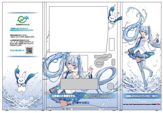 「北海道e-水プロジェクト」は、北海道・公益財団法人北海道環境財団・北海道コカ・コーラボトリング株式会社の三者協働で取り組んでいる北海道の水環境を守るプロジェクトで、道内の水環境を守る活動を行う団体への支援を行っています。『雪ミク』は北海道を応援するキャラクターとして、2024年4月より同プロジェクトのアンバサダーを務めており、このたび設置される「雪ミク自販機」にもプロジェクト用に制作された『雪ミク』のイラストがデザインされています。