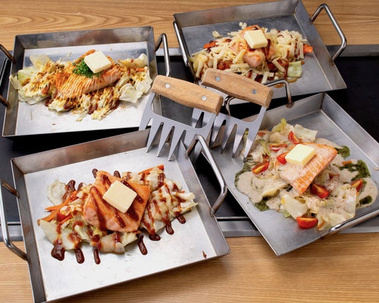 KIBORIならでは。ベアクロウ(熊の爪の形に似たBBQツール)でちゃんちゃん焼きを楽しめます