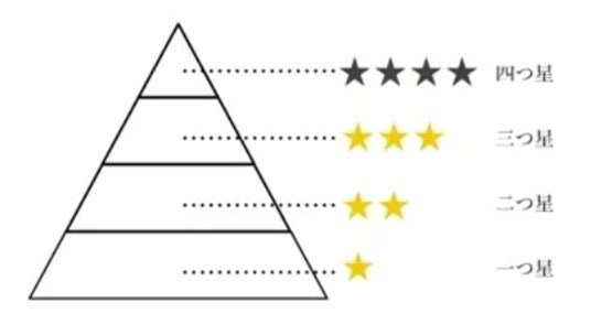 全店で店内製麺を行っている丸亀製麺では、製麺技術を画一的なマニュアルではなく、各々の判断を伴う職人技として教えています。さらに、技術力向上と教育システムの一環として、2016年より取り入れているのが麺職人制度です。技術や経験によって、一つ星から四つ星まで、4つに分類しています。