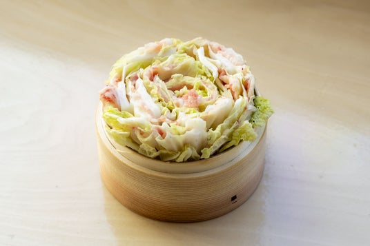 豚バラ肉の旨味が白菜に染み込み、柔らかく甘みのある味わいが楽しめます。セイロで蒸すことで豚肉の脂が落ち、ヘルシーでありながらも満足感のある一品になりました。