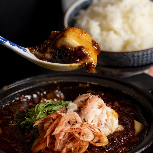 旬の桜エビと蟹をたっぷりと使用した季節限定メニューです。濃厚でピリ辛な麻婆ソースが滑らかな京豆腐と絡み合い、口の中に旨味が広がります。香ばしい桜エビと甘みのある蟹がトッピングし、海の幸の旨味が麻婆のスパイスとマッチする一品です。