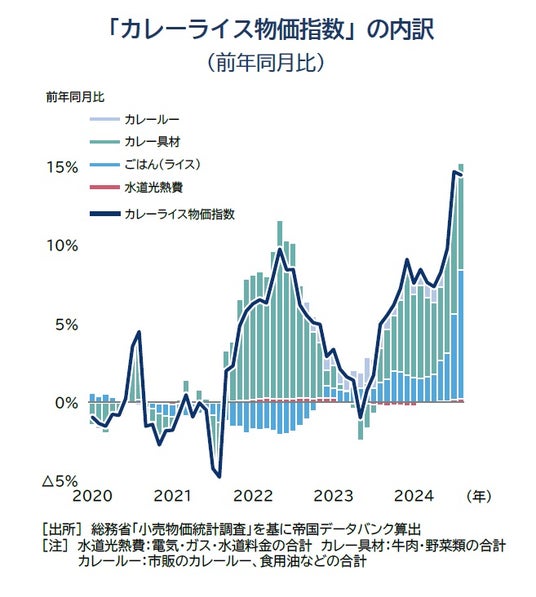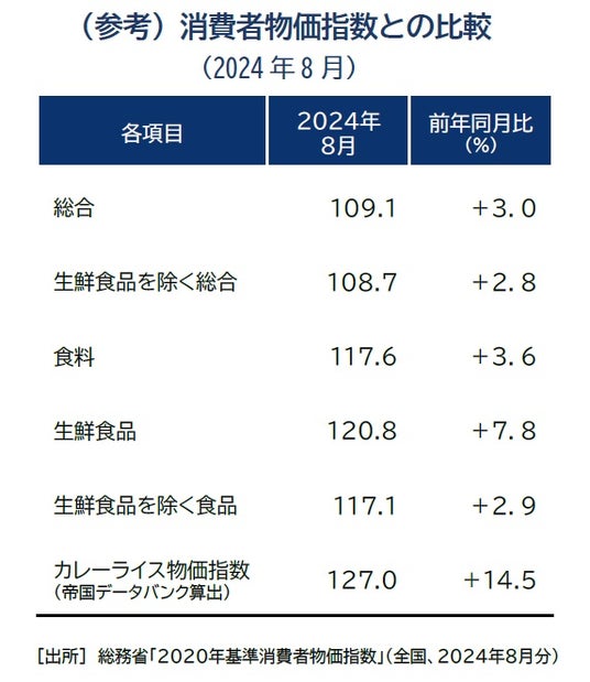 株式会社帝国データバンクは、生鮮食品などの値上げを加味した食卓への影響度を示す「カレーライス物価指数」を独自に試算し分析を行った。
