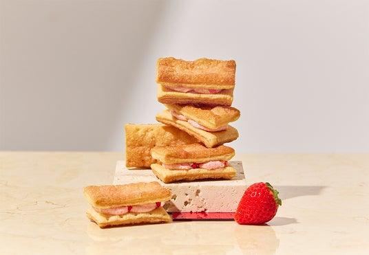爽やかな酸味とフレッシュな香りで知られる「ポーランド産センガセンガナ苺」。きゅんと甘酸っぱいフリーズドライに仕立て、カスタードとラムの香りをきかせた柔らかないちごクリームに散りばめました。さらにいちごの美味しさを最大限に引き出す108層に折り上げたサクサク香ばしいパイ生地には、ストロベリーシュガーをまぶしていちご尽くしに。サクッと頬張れば、いちごとカスタードの至福の美味しさがお口いっぱい広がります。