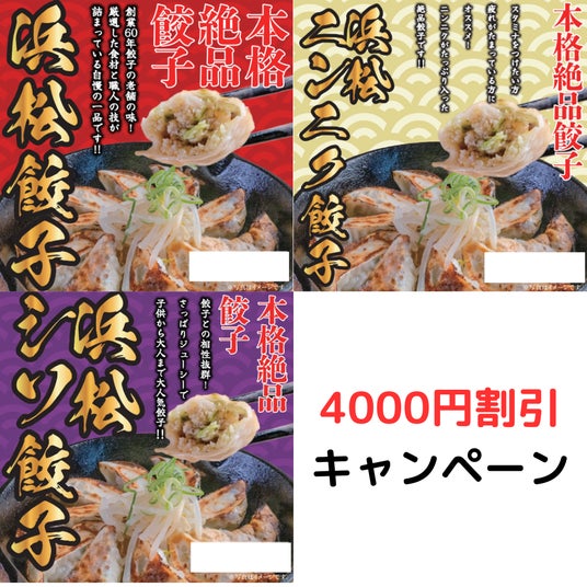 浜松餃子・梅しそ餃子・ニンニク餃子 4000円引き