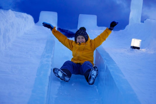 氷の滑り台は、アイスヴィレッジの展望台から街へと滑り降りることができる遊具です。子ども用の小さな氷の滑り台もあるので、子どもから大人まで楽しめる人気のアクティビティです。