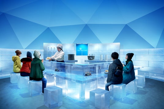 氷でできたショーウィンドウを併設したブティックが誕生します。アイスヴィレッジをより一層楽しむためのアイテムを用意。氷の街での記念写真をより思い出に残せるように、大人も子供も一緒にコートをレンタルすることができます。他にも、氷をモチーフにしたアクセサリーや、気温で色が変わるアクセサリーなども用意しています。