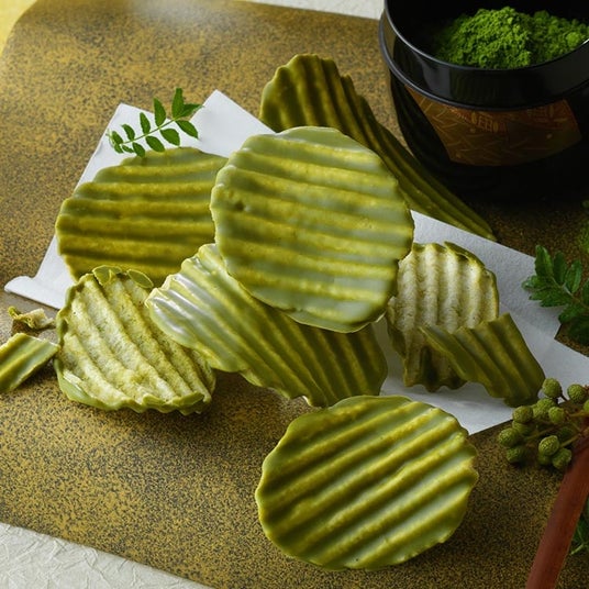 抹茶と和歌山県産ぶどう山椒をまぶしたポテトチップの片面に、宇治抹茶のチョコレートをコーティング。口に入れた瞬間にピリッとさわやかに広がる山椒と、ポテトチップの塩味、抹茶チョコレートのほろ苦いコクと甘さがクセになる味わいです。隠し味にピスタチオペーストも使用しています。