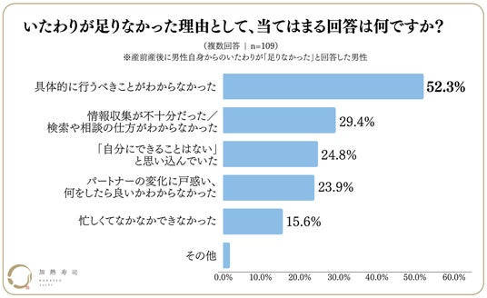 ・"いたわり"が足りていなかったと回答した男性のうち、「具体的に何をすべきか分からなかった」人が52.3%と半数以上を占めた。