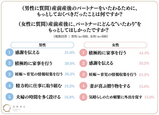 産前産後に男性が行っていたことと、女性が求めていたことの間には大きなギャップがあることが発覚!