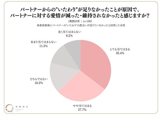 パートナーからの産前産後の"いたわり"の度合いで、その後の愛情に変化があることが判明!足りていなかったと感じる女性の6割強は、愛情が減少