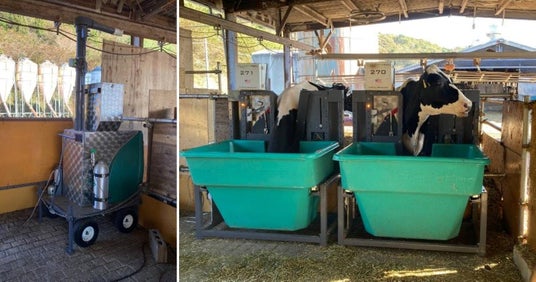フィード・ワン株式会社 いわきリサーチセンターに設置されているGreen Feed(左画像)とSmart Feed(右画像)