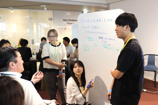 本プログラムは、受講生23名(学生、社会人含む)に向けて、8月から講義演習型の基礎4科目を開講してきました。ワークショップでは、AIの基本原理とその活用方法、起業とコミュニケーションの重要性を学ぶ必修基礎科目「起業>コモングラウンド>AI」(講師:福知山公立大学:西田 豊明 副学長、福知山公立大学 地域経営学部 加藤 好雄 准教授)の演習成果として、受講生から各プロジェクトの生成AI検証結果が発表されました。その結果を基に、さらにSHIBUYA QWS会員企業らとのブラッシュアップのワークショップが実施され、今後の構想に活かされる時間となりました。なお、本プロジェクトの一部は、秋開講のPBLにおいて、クラウドファンディング実証への移行が予定されています。