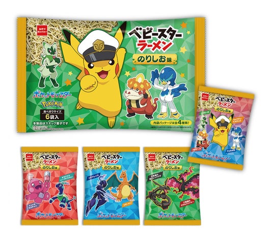 株式会社おやつカンパニー(所在地:三重県津市 代表取締役社長:横山正志)は、行楽のお供やこれからのパーティーシーズンにもぴったりな個包装が6袋入ったポケモンデザインの「ベビースターラーメン(のりしお味)6袋入」を、2024年10月14日(月)より全国にて期間限定発売します。