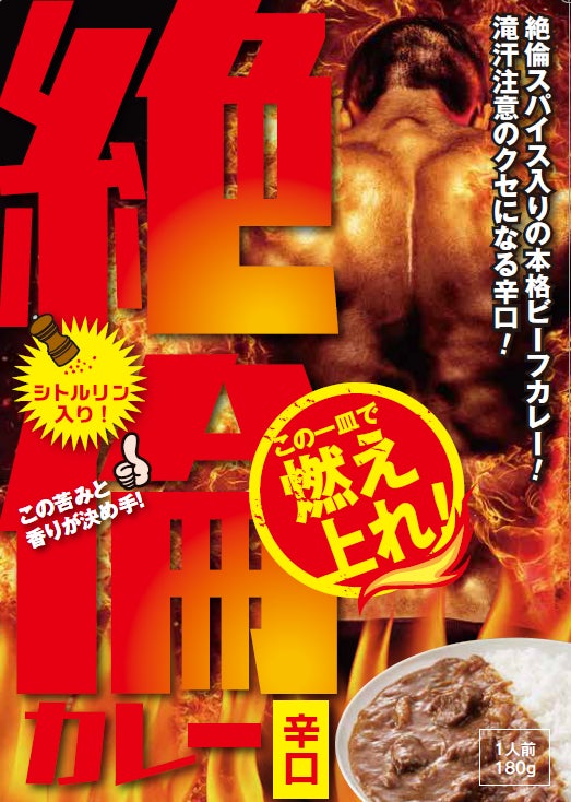 絶倫カレー中辛の累計出荷1万食を記念して24年4月に「辛口」を発売。唐辛子を約4倍に増量して「あとから来る辛さ」を出しつつも食べやすい辛口カレーとなっている。