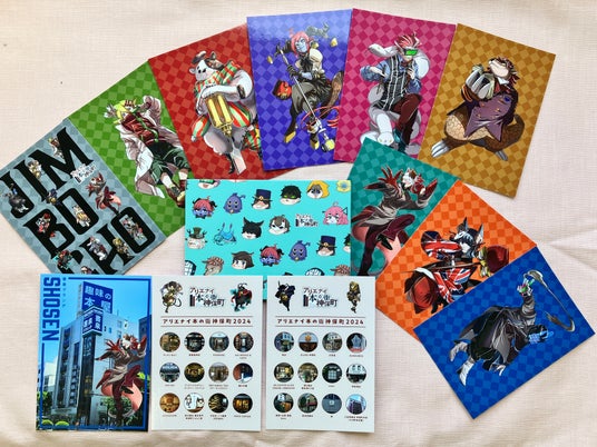 くがほたる先生絵による、薬理凶室怪人とアリエナイ本の街神保町スタンプラリーの参加店舗のコラボポストカードセットです。
