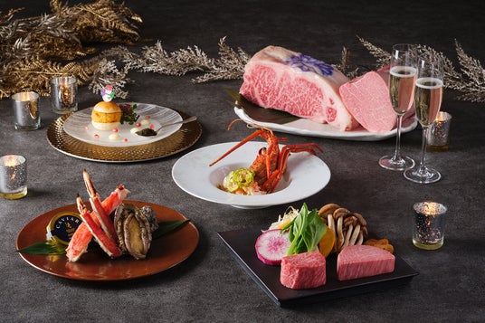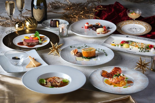 シャンパンやドン・ペリニヨンなどの乾杯から始まり、キャビアやオマール海老、黒毛和牛などの高級食材を活かしたフェスティブシーズンのお祝いにふさわしい贅沢で華やかな料理をお届けいたします。