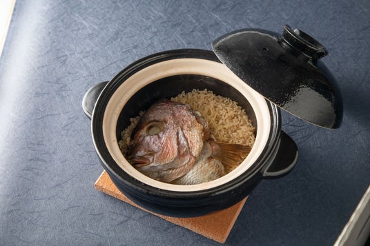 名物 真鯛土鍋御飯 2,618円 こだわりの出汁と真鯛から取ったうま味を合わせ炊き上げた、香ばしい風味豊かな自慢の土鍋ご飯