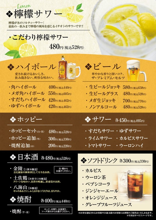 ●「うどん居酒屋」として2000年7月7日より西梅田店のオープンと同時に以前までのうどん専門から、昼は本格讃岐うどん、夜は焼き鳥や手作り豆腐を中心にした、酒の肴を用意して「うどん居酒屋」の展開を開始しました。本格讃岐うどんとしては、出汁を瀬戸内産のいりこを使って出汁を取り、メニューは、地元ならではのメニュー表記(あつあつ、ひやひや、ひやあつ)を用いて販売。釜玉うどん、生醤油うどんなど本番讃岐うどんをコンセプトに営業スタイルの変更を行いました。