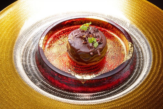 お口直しのグラニテは弾けるキャンディのアクセントをあしらい、グランデセールにはショコラを使った目にも美しいひと皿をお届けします。