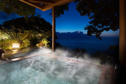 アフターディナーには、星空と月明かりが美しい露天風呂を再び堪能。翌日は、目覚めにふさわしい爽快な景色が広がる朝湯も、早起きする価値のあるご褒美です。
