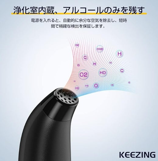 KEEZINGアルコールチェッカーは、呼気に含まれるアルコール濃度をわずか数秒で正確に検出できる高性能センサーを使用しています。電源を入れるだけで、余分な空気を自動的に排除し、最適な測定環境を提供します。測定範囲は0.00-0.19BAC(0.0-1.9g/L)と幅広く、シンプルに息を吹きかけるだけで、手軽にアルコールチェックが完了します。