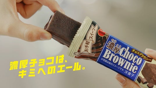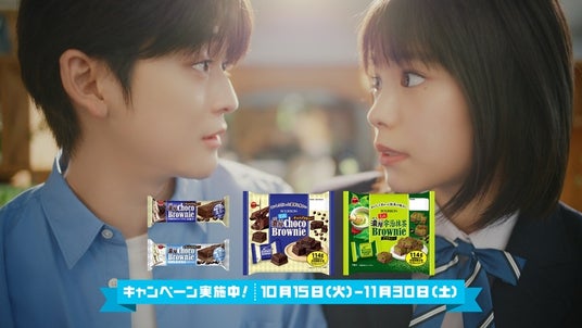 2023年春と秋に放映された、濃厚チョコブラウニーを通じて出会った先輩・後輩の濃厚青春ストーリーの続編。大学生になった先輩・高橋文哉さんが思い悩んだ様子の高校生の後輩・當真あみさんに対してやさしく問いかける形で登場。緊張した面持ちで想いを伝えられないと悩みを打ち明ける當真さんに対して、高橋さんが「濃厚チョコブラウニー」を手に濃厚な想いであれば届くと後押します。高橋さんの勇気づけてくれる姿に當真さんは思わずハッとする表情に。2人で仲良く並びながら「濃厚チョコブラウニー」を食べることで勇気付けられた當真さんはなにかを決心した様子で高橋さんを見つめます。そして高橋さんの元に近寄り、真剣な眼差しで想いを伝えようとします。