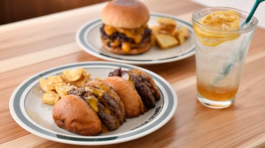 そして、数あるこだわりメニューの中でも、他に類を見ない手法で作る「切ったやつ」がBRISKSTANDの名物となっています。ハンバーガーを縦に切り、その断面を熱々の鉄板で二度焼きすることで、パティや具材に肉汁をしっかりと吸わせる逸品です。限定食のため、開店前から「切ったやつ」を求めて列ができることも。思わず写真を撮りたくなる斬新な見た目と香ばしい断面の食感が、多くのお客様からご好評いただいています。