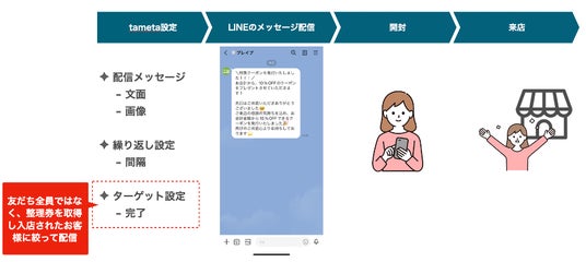 LINEで順番待ちや呼び出し通知が可能なサービスを開発・提供する株式会社ブレイブテクノロジー(本社:千葉県流山市流山おおたかの森、代表取締役:磯本 悟、以下 当社)は、matoca / yoboca に蓄積したお客様データを活用して、ターゲットユーザーに対して効果的なLINEのメッセージを自動で送信することができるtameta(タメタ)の提供を開始しましたので、お知らせします。