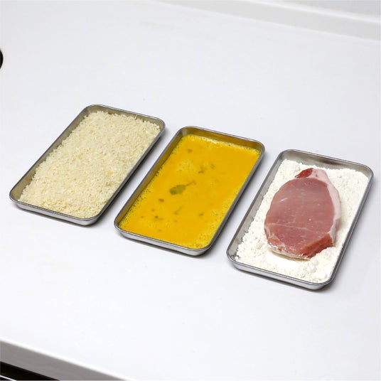 パン粉・溶き卵・小麦粉を入れておけば後は順番にお肉を浸けるだけ。