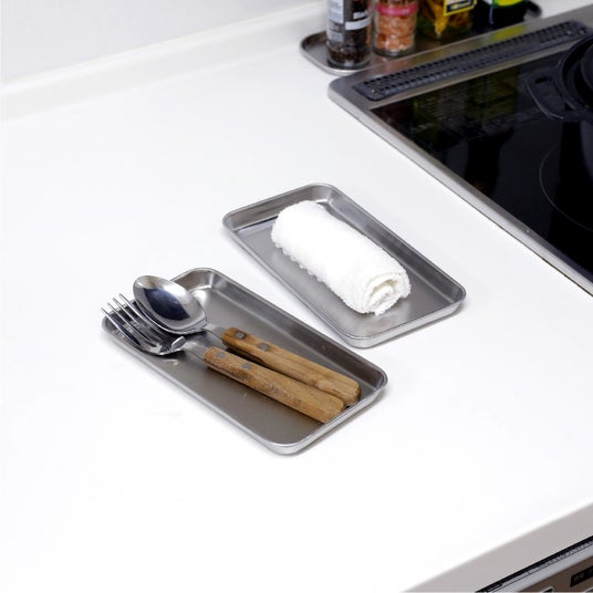 おたまや菜箸などの調理道具を、一時置きしておくのに最適な横長のトレー。