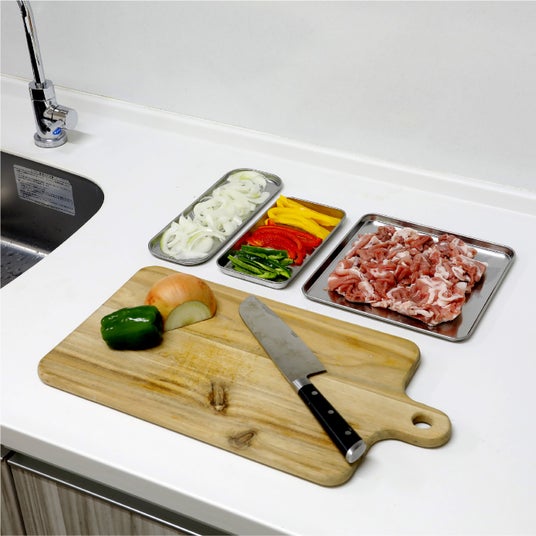 洗った食材や、下ごしらえをした食材を一時置きしておくのに最適な長方形のトレー。