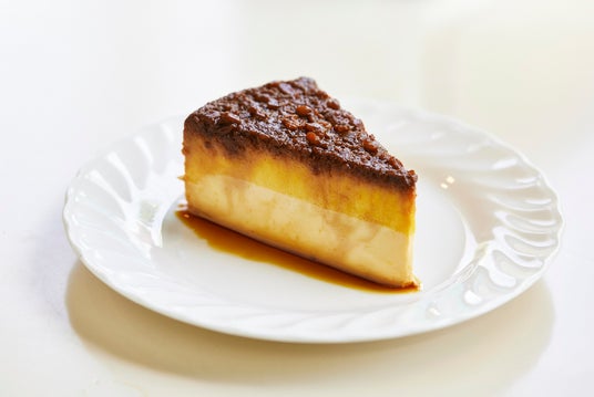 秋冬期限定で販売されている「かぼちゃのプリン」は、カラメルソースを沁み込ませ、かぼちゃの粒感を残したカボチャプリンと、カスタードプリンの2層になっており、丸いケーキ型を使って焼き上げています。