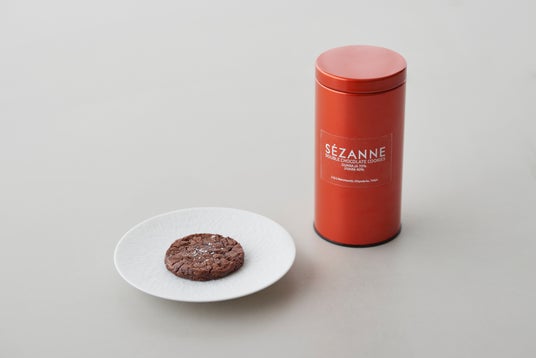 ふたを開けると、まるでチョコレートの世界へ誘われるような深い香りが広がる総料理長ダニエル・カルバート監修、ミシュラン2つ星フレンチレストラン「SEZANNE (セザン)」が贈る「ダブルチョコレートクッキー」。ヴァローナの「グアナラ 70%」の濃厚で力強いカカオの風味に、ミルクチョコレート「ジヴァラ 40%」がもたらすクリーミーでまろやかな甘さを見事に調和させ、ビターとスイートのバランスを徹底的に追及したダブルチョコレートクッキーです。また、「英国王室御用達」のイギリスエセックス海岸の芸術品ともいえる輝くシーソルトをクッキーの表面に乗せて、チョコレートの深みをより一層引き立たせております。フェスティブ期間はクリスマスカラーの華やかな限定缶がお目見えし、大切な方へのギフトやご自身へのご褒美として最適な一品へと仕上げております。