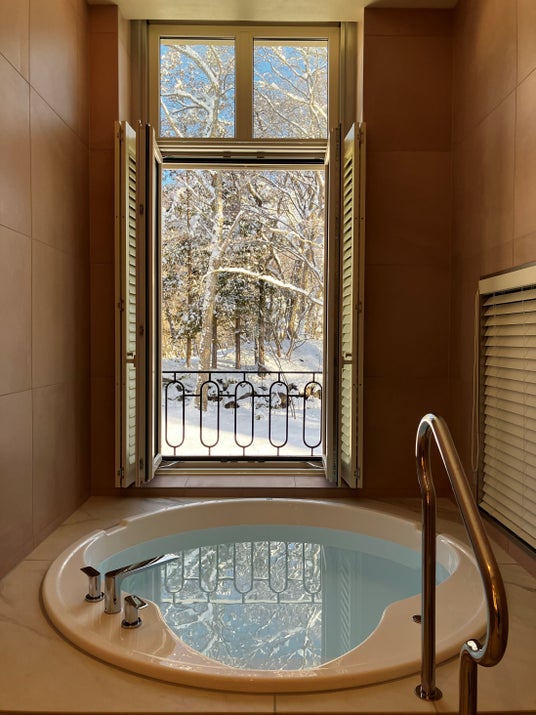 直輸入したフランスワインと正統派フランス料理、高い天井と大きな縦長の窓がある開放的な客室、欧州から取り寄せたシャンデリアや調度品、絵画など、日本にいながらにしてフランスの邸宅にいるような「お籠り滞在」を通して、冬ならではの”上質な日常”をお届けいたします。