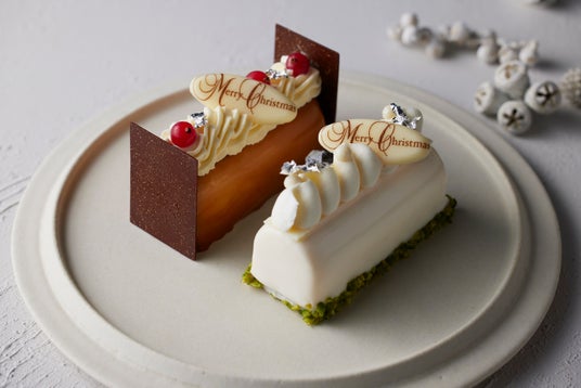 甘酸っぱいパッションフルーツのゼリーと、濃厚な甘みのマンゴークリームをほろ苦いキャラメルのムースでコーティングした「プティノエルキャラメル」と、ホワイトチョコレートで冬らしく仕上げた「プティノエルブラン」をご用意します。味も雰囲気も異なる2種は食べ比べにもおすすめです。