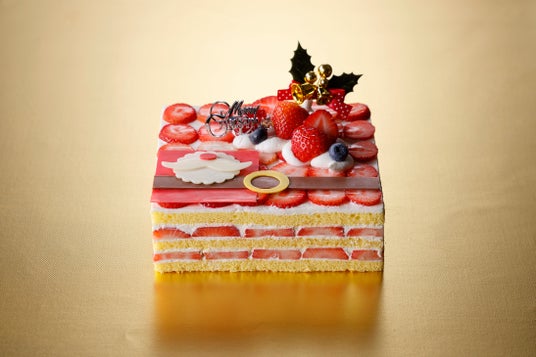 サンタクロースのモチーフが目を引くスクエア型のいちごのショートケーキ。きめ細やかでくちどけ滑らかなスポンジと軽やかな生クリームにいちごをたっぷりと組み合わせた、どの世代からも愛されるケーキです。