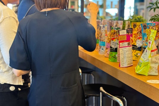 当日は、総勢30名ほどのコクヨ社員が参加し、それぞれが選んだ「ナッツスナッキング」シリーズとヨーグルトの食べ合わせを楽しみながら、爽やかな朝食の時間を過ごしました。参加者からは「早く会社に来てよかった」「普段の業務時間内だけでは生まれない人達との交流ができた」と、イベント実施について好評の声が挙げられました。