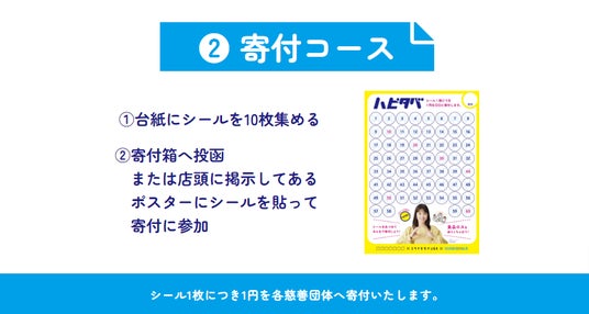 ※寄付は、ハピタベシール1枚1円として地域の子ども食堂などにスーパーマーケットを通じて寄付できます。